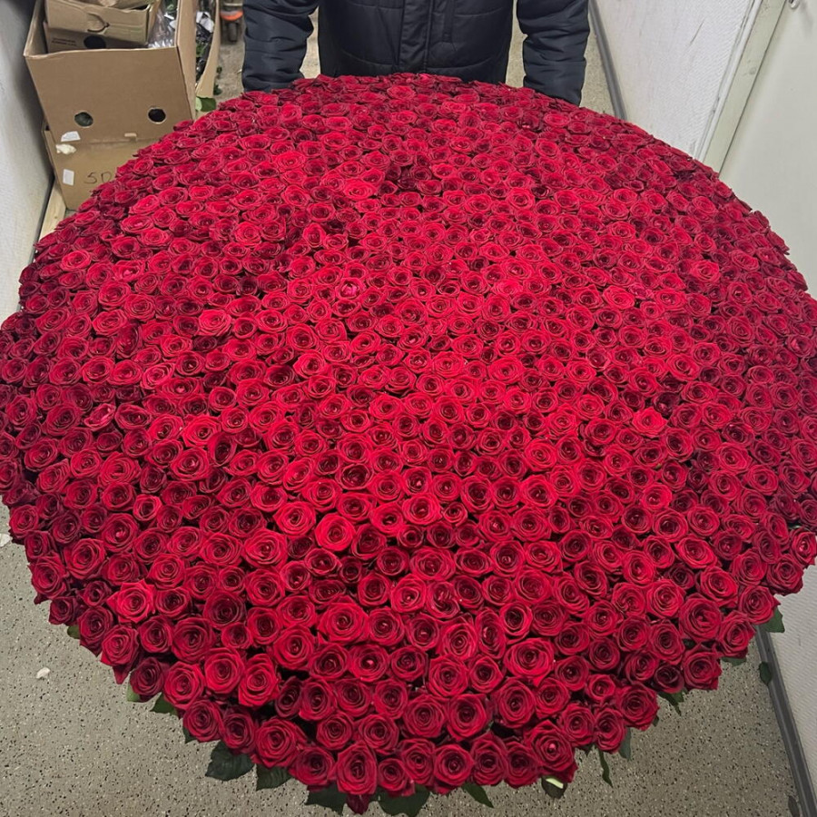 На фото букет из 1001 красной розы в корзине «величие». В составе: роза 1001 шт, корзина (xl) 1 шт, оазис флористический 15 шт, . Все цветы свежие и ароматные, букет красиво оформлен и отлично подходит для подарка. Доступна доставка цветов или самовывоз.