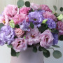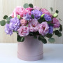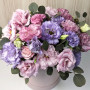 Букет из 15 розовых и сиреневых эустом в коробке в Воронеже