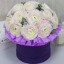 17 белых ранункулюсов в шляпной коробке в Воронеже