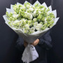 На фото букет 19 белых эустом. В составе: эустома (лизиантус) 19 шт, дизайнерская упаковка 3 шт, атласная лента 2 шт, . Все цветы свежие и ароматные, букет красиво оформлен и отлично подходит для подарка. Доступна доставка цветов или самовывоз.