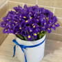 45 фиолетовых ирисов в шляпной коробке в Воронеже