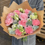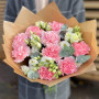 Букет из белой эустомы и розовых гвоздик в Воронеже