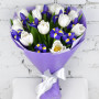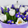 Букет из синих ирисов и белых тюльпанов в Воронеже