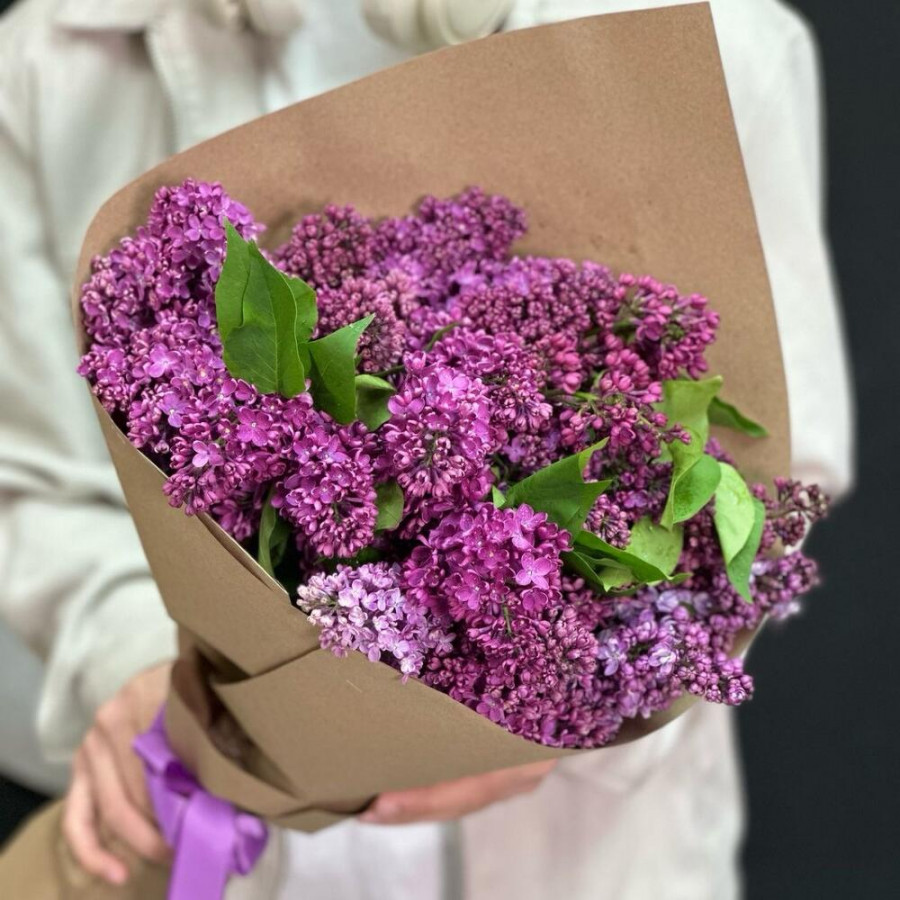 На фото букет из 11 веток сиреневой сирени. В составе: сирень 11 шт, крафт-бумага 2 шт, атласная лента 1 шт, . Все цветы свежие и ароматные, букет красиво оформлен и отлично подходит для подарка. Доступна доставка цветов или самовывоз.
