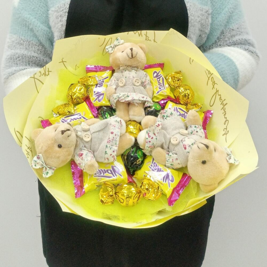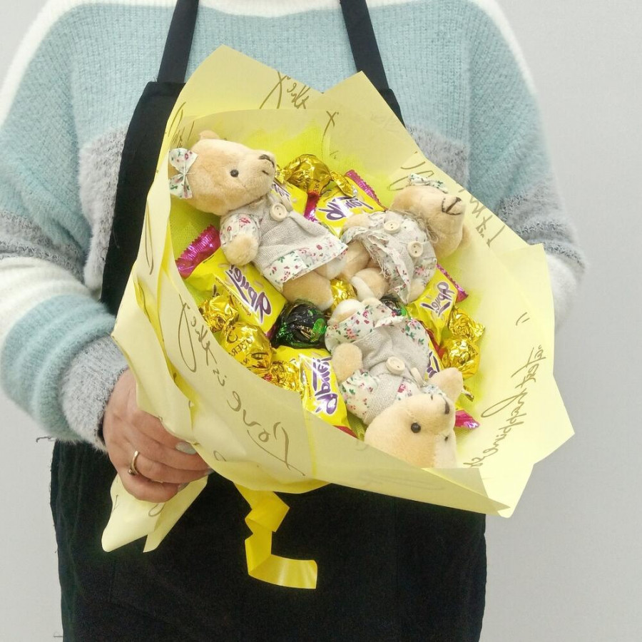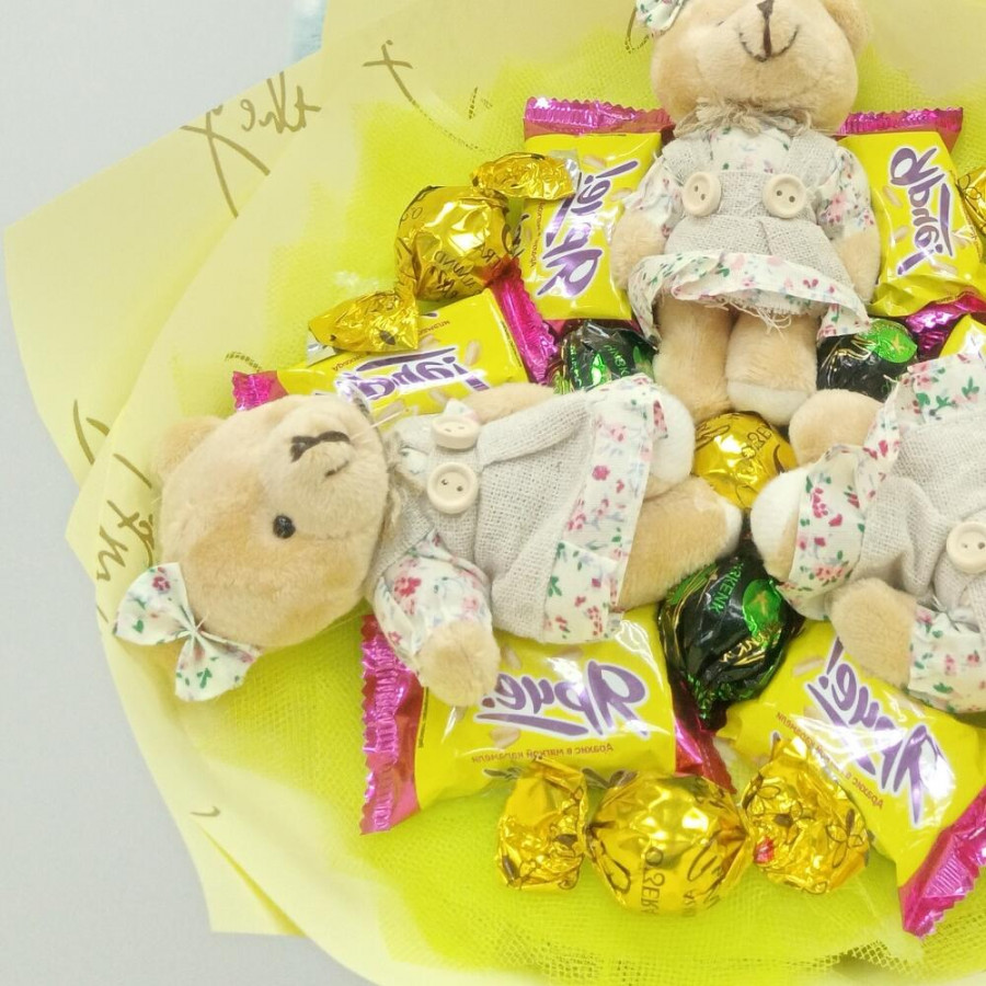 Букет из игрушек медвежат и конфет в Воронеже