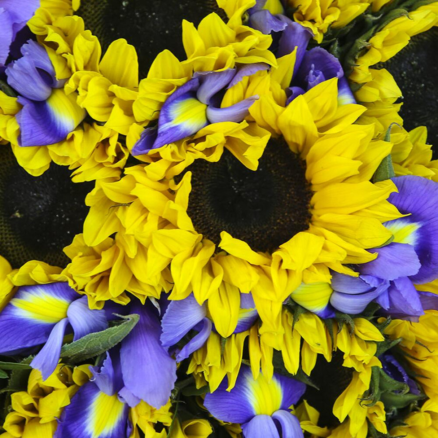 Букет из подсолнухов и ирисов в Воронеже