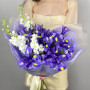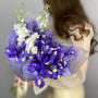 Букет из синих ирисов и белой эустомы