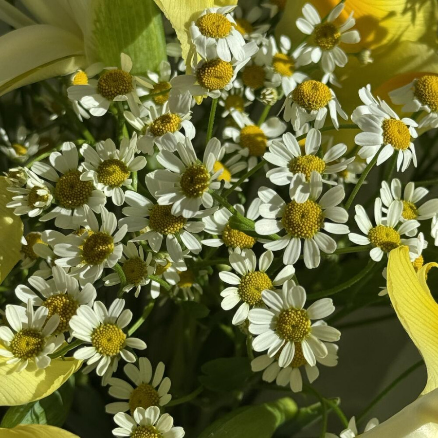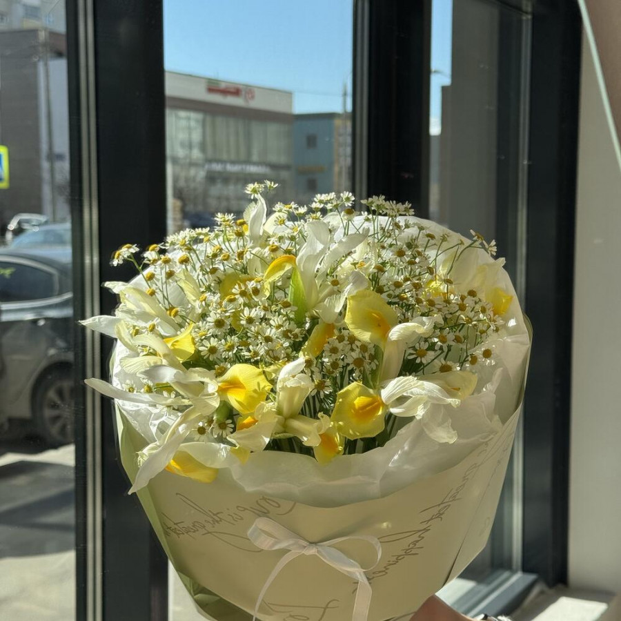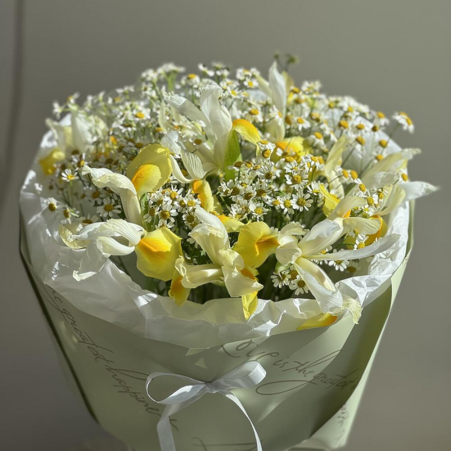 Букет из желтых ирисов и ромашек в Воронеже
